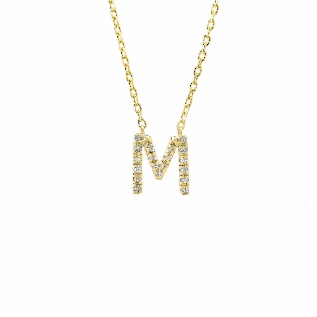 Sterling Silver Initial Round Prong Necklace (Silvr Initial Necklace) (Silver Diamond Initial “m” Necklace W/18k Yg Plate) D – 0.06 (9.18mm H 6.78mm W),18k Yg Plated,Initial M,Letter M