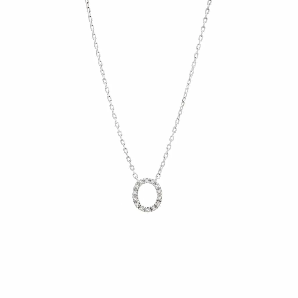 Sterling Silver Initial Round Prong Diamond Necklace (Silvr Initial Necklace) (Silver Diamond Initial “o” Necklace) D – 0.04 (8.93mm H 7.91mm W),Initial O,Letter O