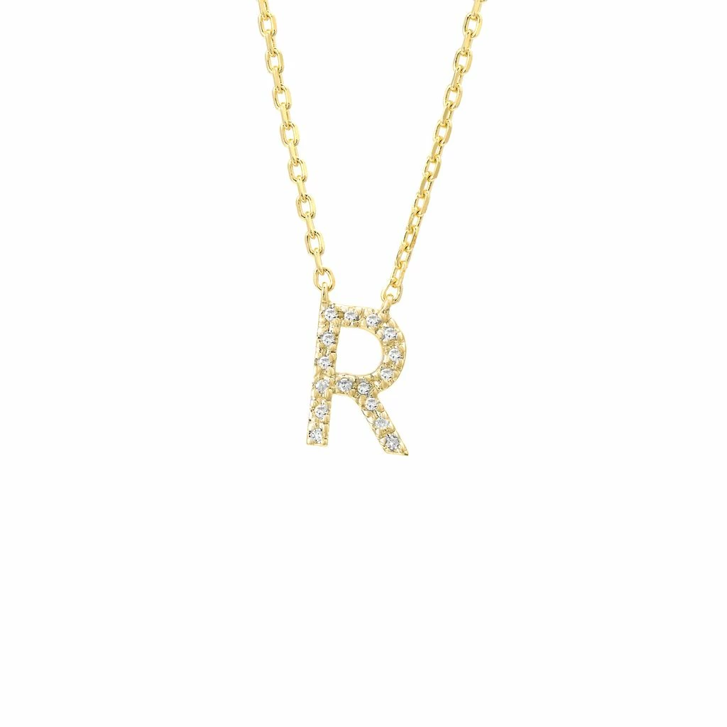Sterling Silver Initial Round Prong Diamond Necklace (Silvr Initial Necklace) (Silver Diamond Initial “r” Necklace W/18k Yg Plate) D – 0.05 (9.18mm H 6.78mm W),18k Yg Plated,Initial R,Letter R