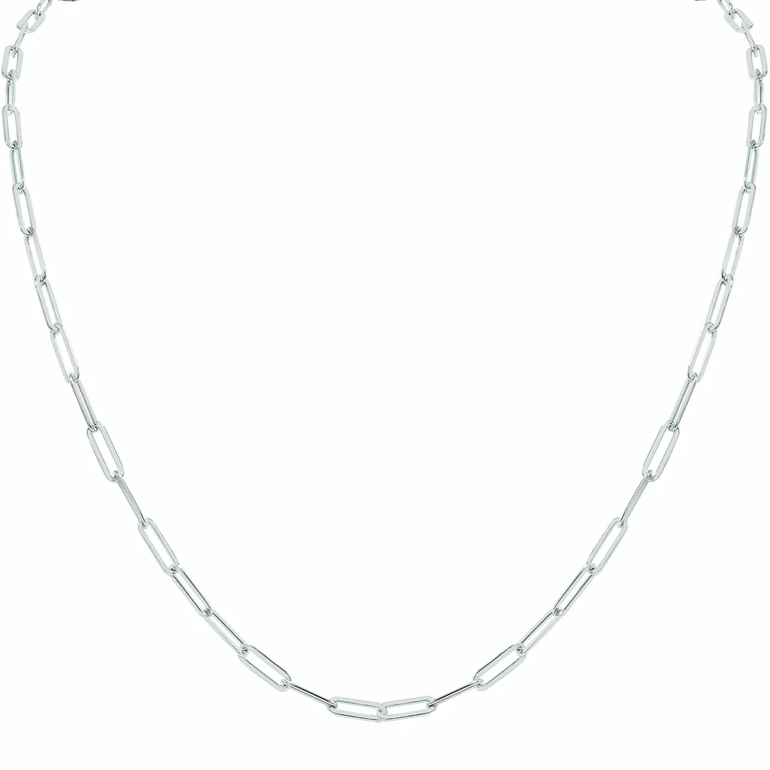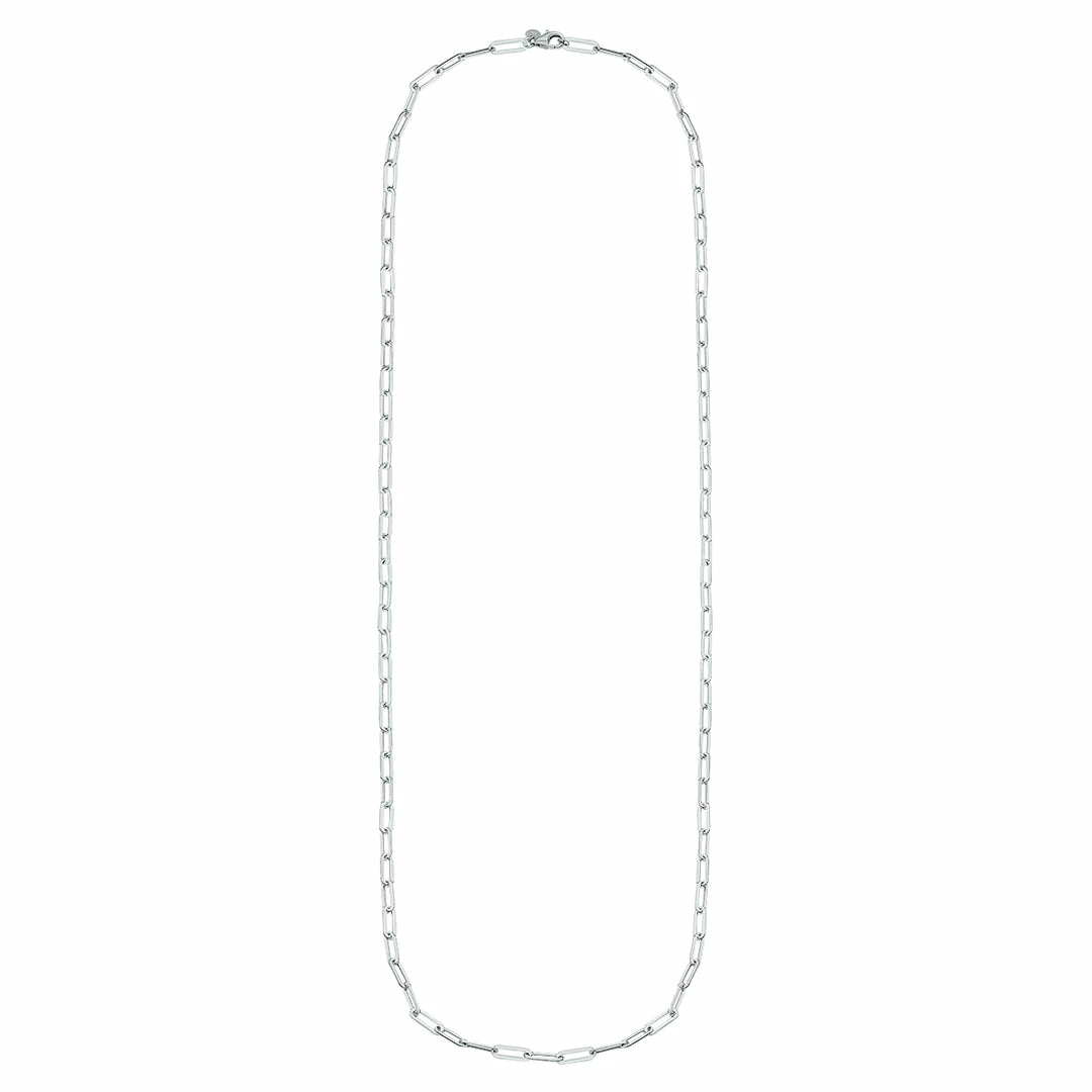This masterfully crafted, long, and elegant Silver Rhodium paperclip necklace with a lobster clasp is perfect for anyone looking to make a statement with their jewelry. The trendy yet timeless style of this 30-inch necklace will elevate any outfit for any occasion. Whether you layer this piece with other necklaces or wear it alone for a showstopping look, this stylish and sophisticated piece is sure to become a staple accessory in your jewelry collection.