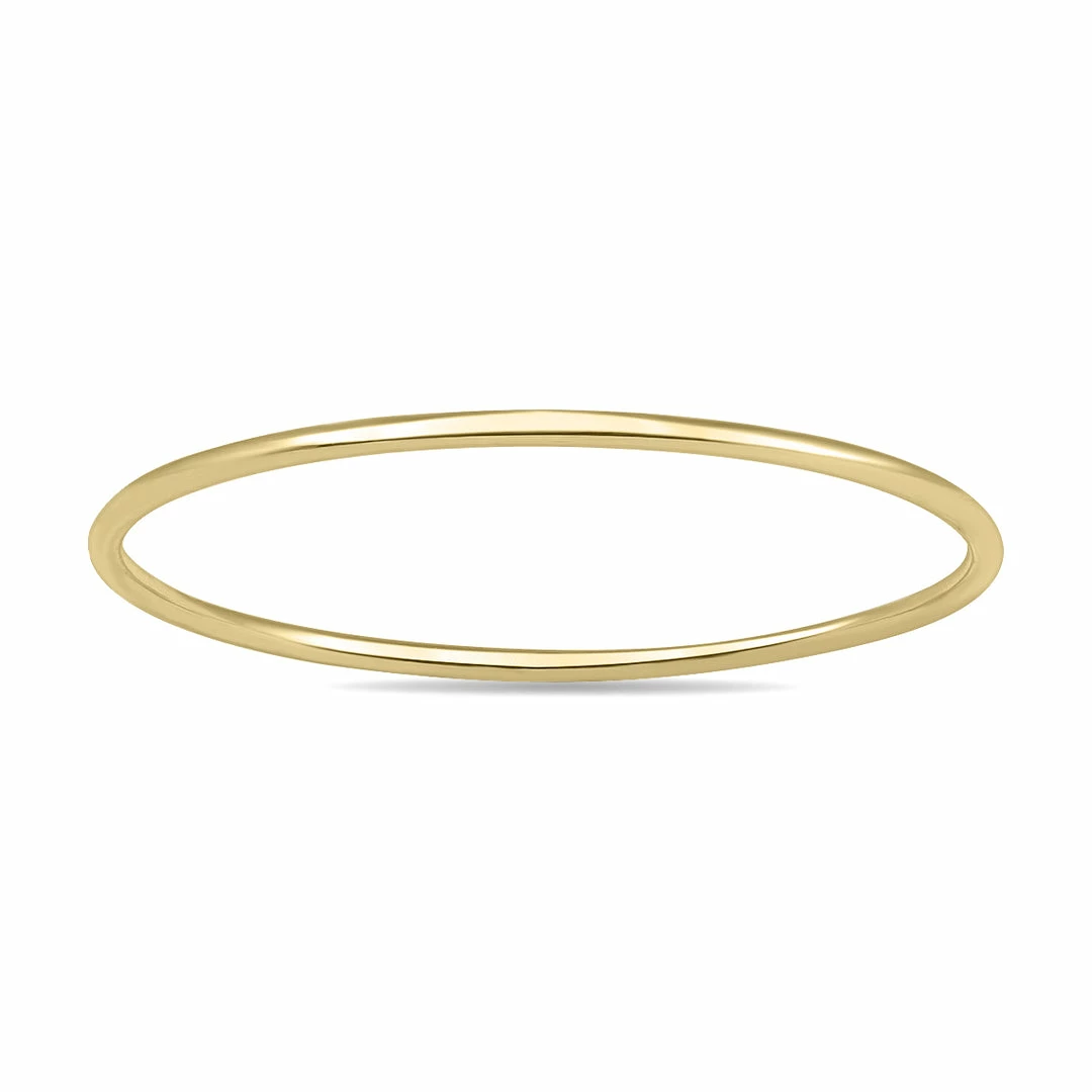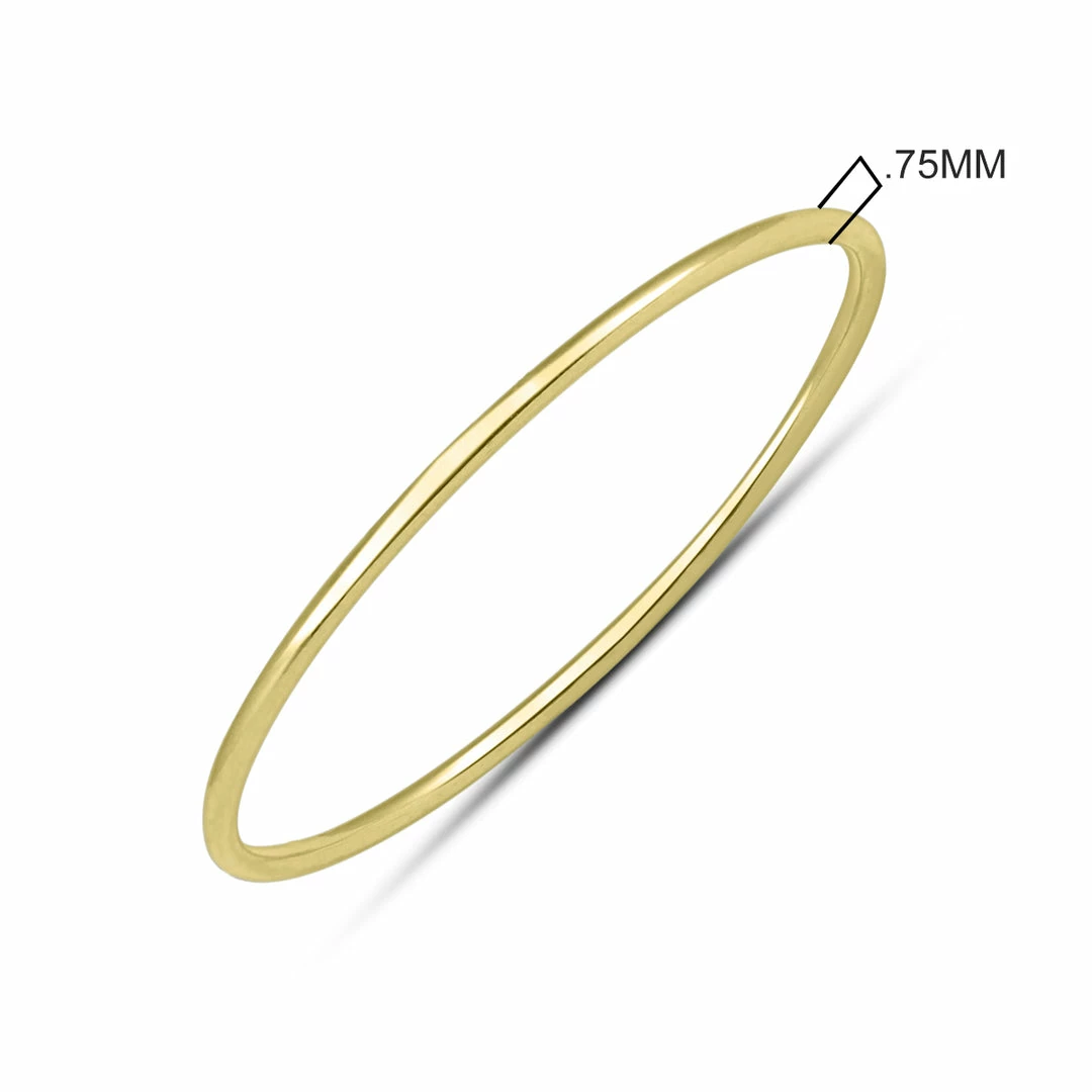 A very stylish thin 14K yellow gold band measuring just .75mm in width for a skinny wire stackable trendy look. This ring can be worn alone or stacked with several others either together or on different fingers. The band can also be purchased in a smaller size so it can fit as a forefinger or knuckle ring. The band is crafted in 14K yellow gold. A quality band that is a great fashion piece and made in 14K yellow gold. Please note, this ring measures just under 1mm in width and thus is a very thin, dainty wire style ring.
