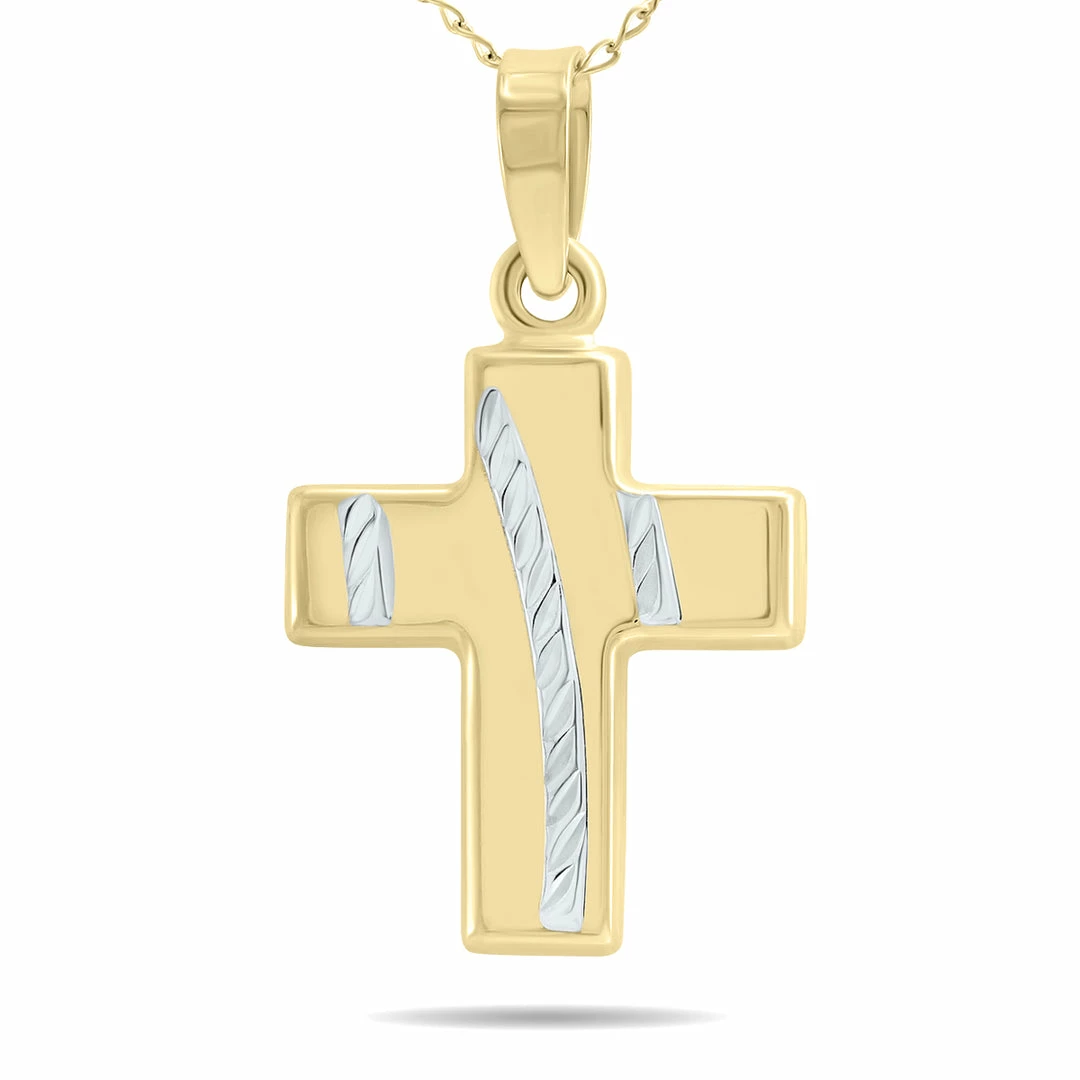 A precious symbol of you faith and devotion. This bold cross pendant is crafted in 10K gold and radiates a divine brilliance that is unmatched by any other design. The cross pendant measures 21.5x14mm and hangs from an 18 inch chain also crafted in 10K gold. The chain secures with a standard spring ring clasp. The pendant is designed and finished with the highest attention to craftsmanship and detail. A beautiful religious faith pendant necklace perfect for everyday wear.
