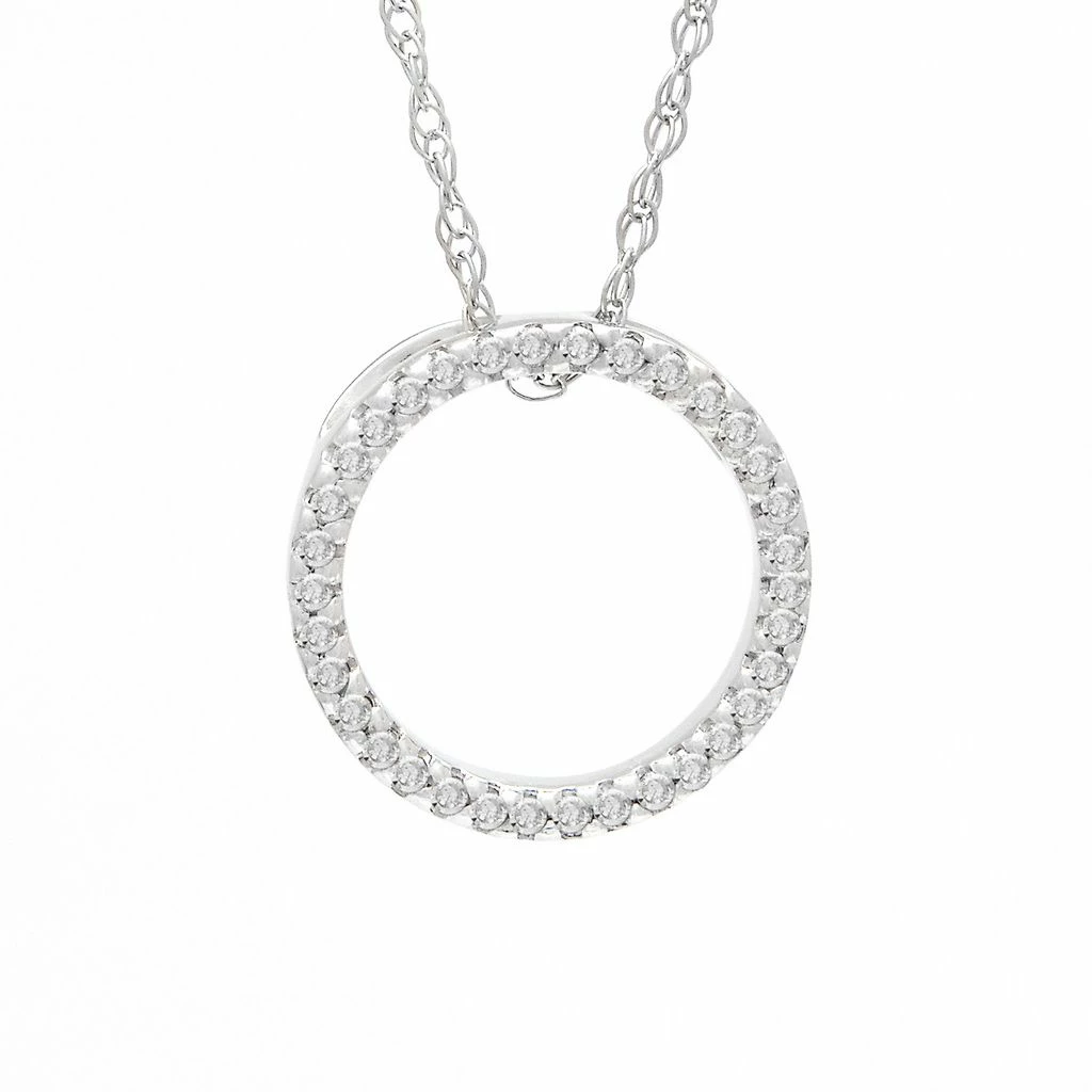 White Gold Circle Single Prong Diamond Pendant (14kwg Circle Pendant) (Small Diamond Circle (Wg/With Chain)) D – 0.10 (11.40mm H),Circle