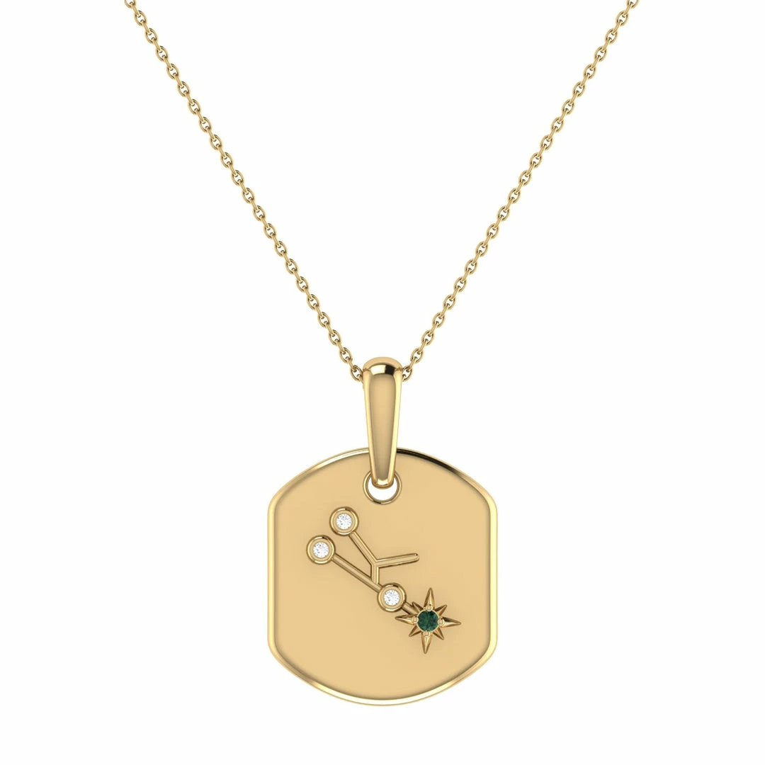 Channel your ambition and mental tenacity with our Taurus Bull Constellation Tag Pendant Necklace. Born between April 20th and May 20th, Taurus love stability and find comfort in consistency. Their birthstone is Emerald. Crafted in 925 Sterling Silver, this pendant necklace features a single emerald gemstone (0.02 Carats) along with 0.03 carats of genuine, natural diamonds in collet prong and bezel settings. Plated in 14K Yellow Gold Vermeil, this necklace has a long-lasting shelf-life. This tag comes with a 18″ cable chain, with jump rings at 16″ and 17″ so you can adjust the length as needed. This tag is 16.1 mm wide and 23.9 mm long. This necklace is beautifully presented with the inspirational poem ‘Cosmic’ written by the founder & CEO.