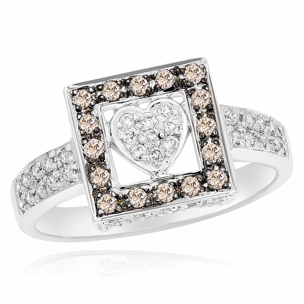 White & Brown Diamond Right Hand Ring – Set in 14K White Gold – Prong Set 0.55 ct /R3140A