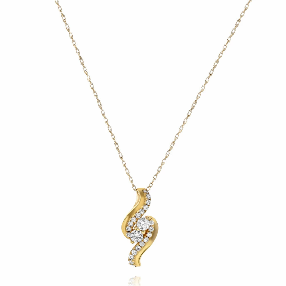White Diamond Necklace Set in 18K Yellow Gold – Prong Set 0.36 ct /PJ097