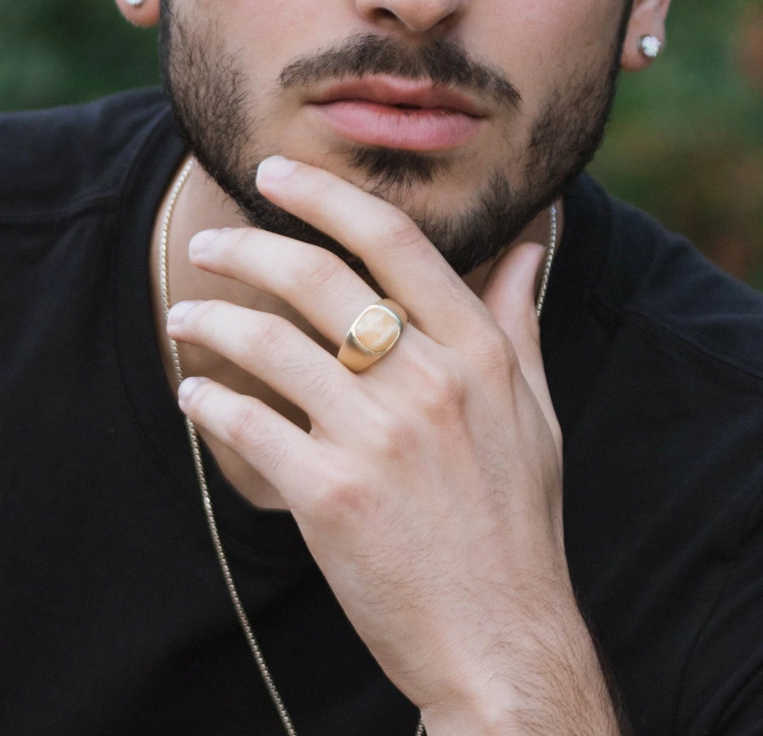 Crafted in 925 Sterling Silver and 14K Yellow Gold Plating, this regal ring features a Yellow Lace Agate stone with a crisp precious metal design.